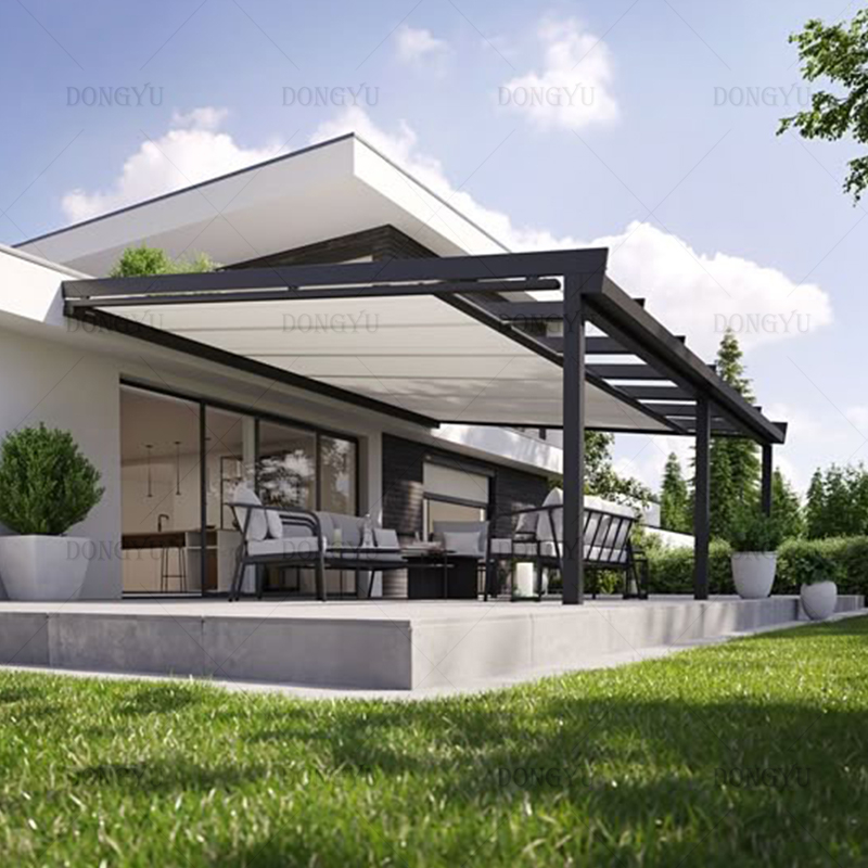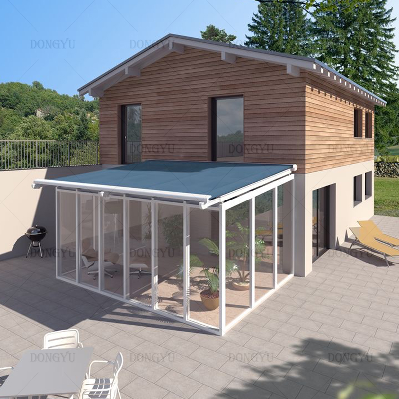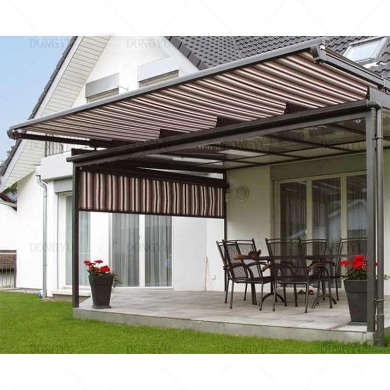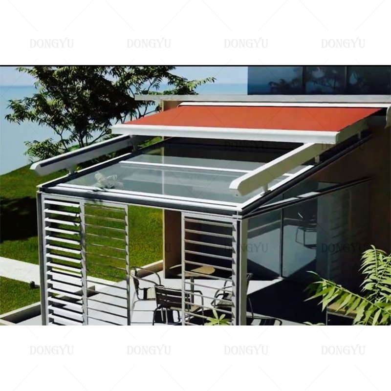 The awning structure is made of high-quality 6063 aluminum alloy,with high strength,light weight,maintenance-free,safe and environmental protection,durable